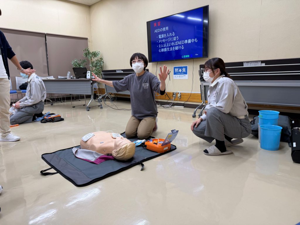 サービス 「救急救命講習会」を行いました(法人事務局) 2025.11.27 11月25日に講師として野田市消防本部の方をお招きして普通救命講習会を行いました。心肺蘇生法、AEDの使い方、止血法、気道異物除去法の指導を受け、胸骨圧迫、AEDの使い方については、実際に人形を使って一連の動作の流れを確認しました。 今後も継続して知識と技術の向上に取り組み、安心してお過ごしいただける施設づくりを進めてまいります。 「介護・障がい福祉職員合同就職相談会」に参加しました(法人事務局) 前の記事