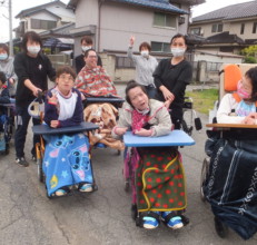 「生活の場」として利用しながら、地域で日常生活や社会生活を営むことができるよう、創作的活動等の日中活動や生産活動、機能訓練を通して、身体機能や生活能力の向上及び維持のために必要な支援を行います。
